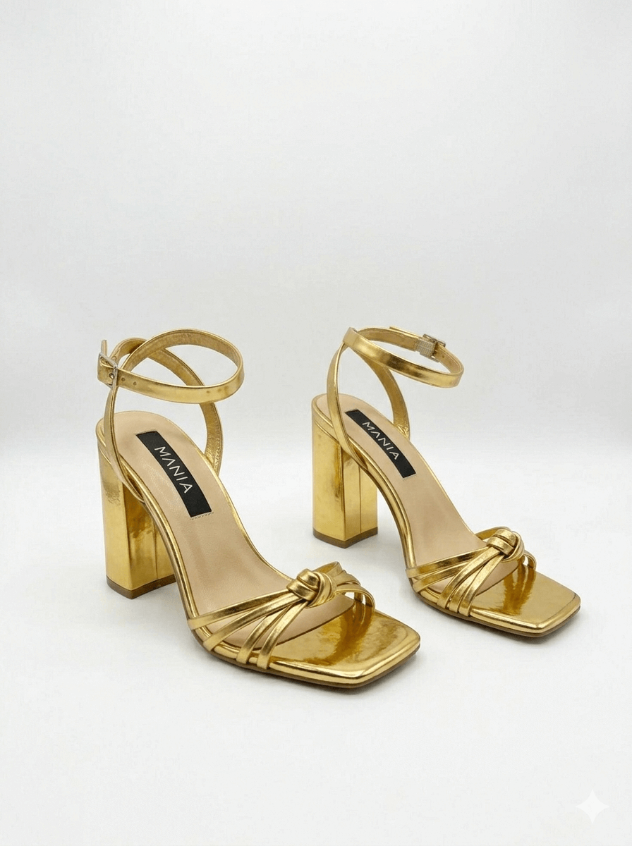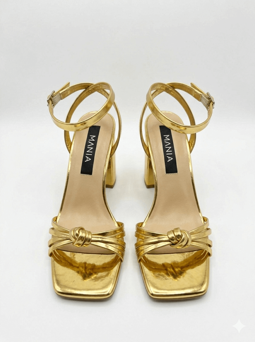 Modelo Capri – Sandalia de tacón con acabado metálico y tiras al frente