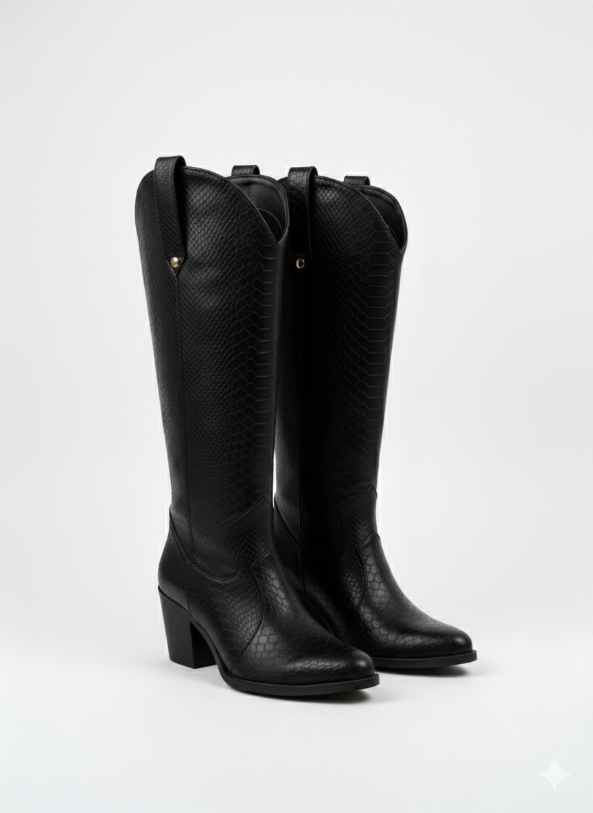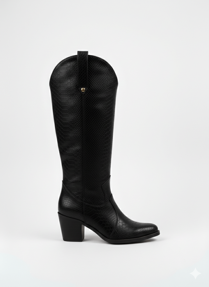 Modelo Tundra – Bota vaquera larga con textura tipo piel de víbora